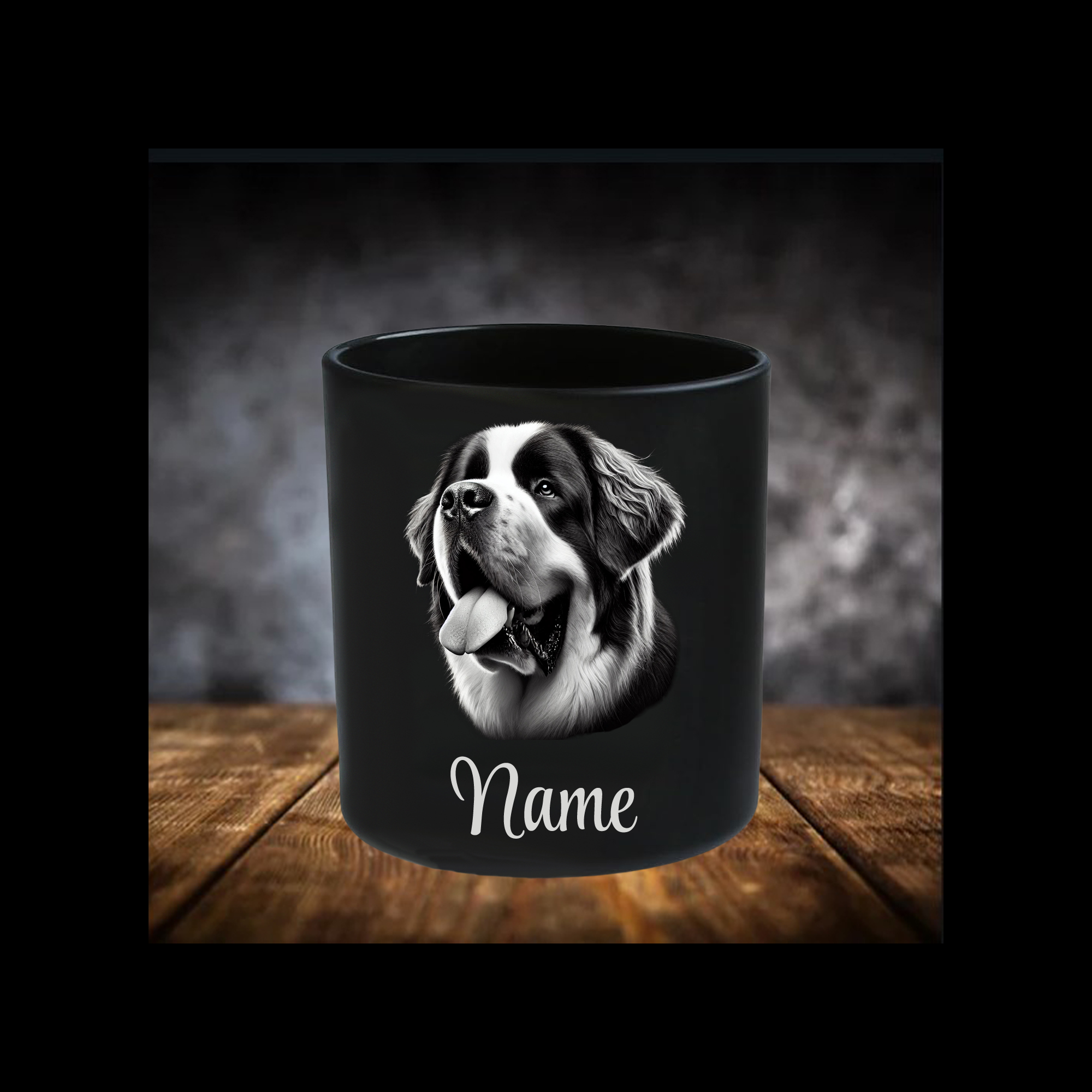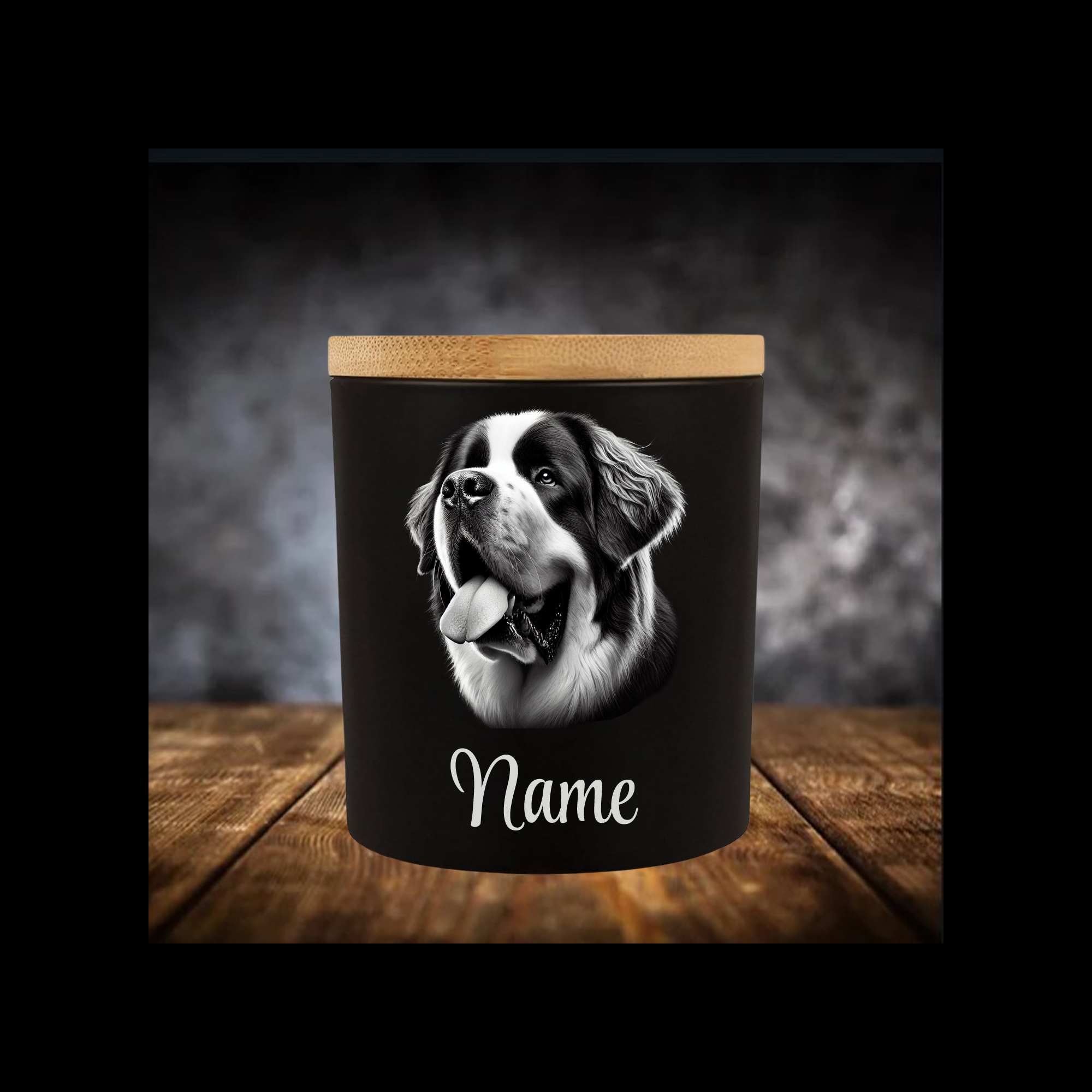 Bernhardiner Leckerliglas | Kerzenglas Matt Schwarz | Gravur Hunderasse mit Name Personalisiert