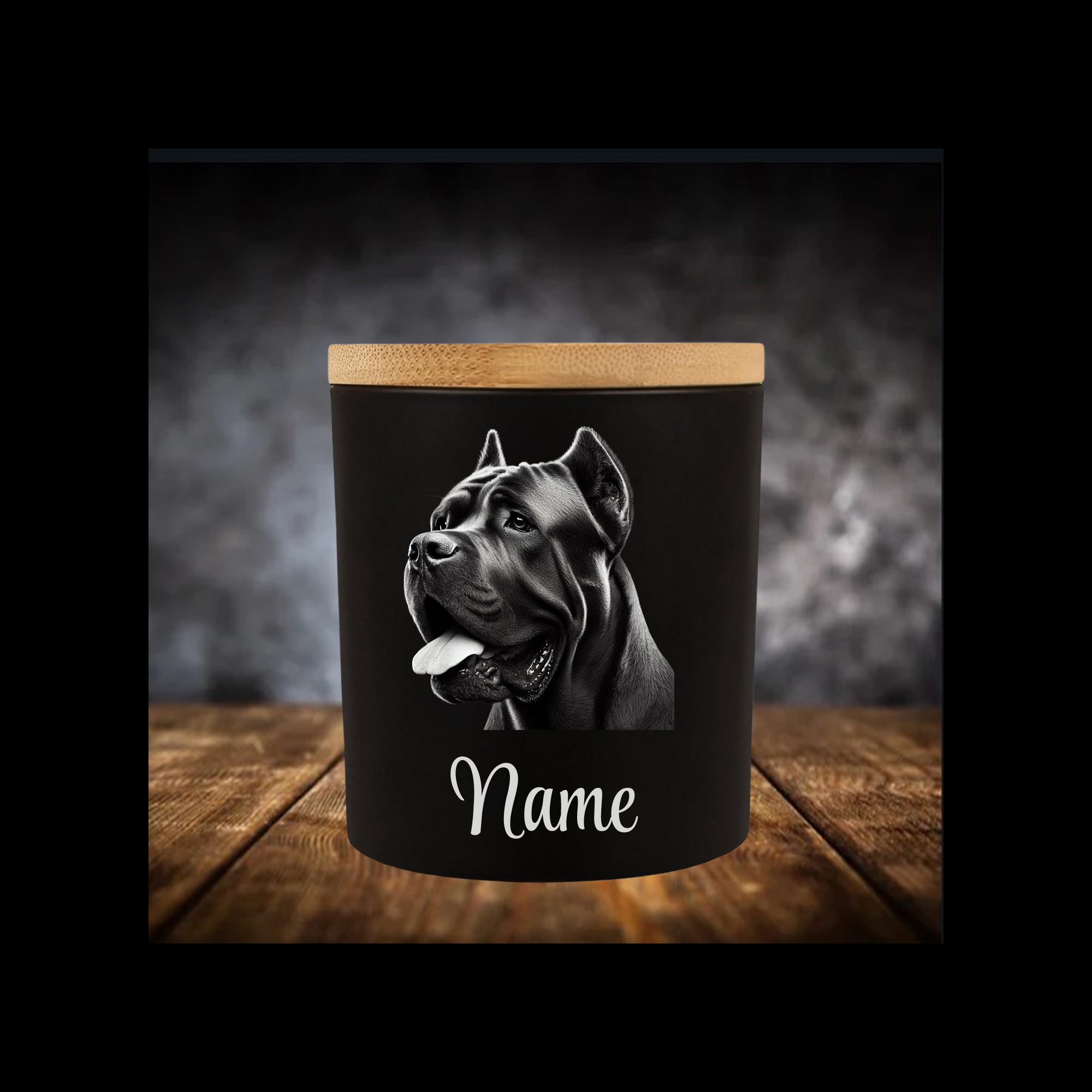Cane Corso Leckerliglas | Kerzenglas Matt Schwarz 400ml | Gravur Hunderasse mit Name Personalisiert