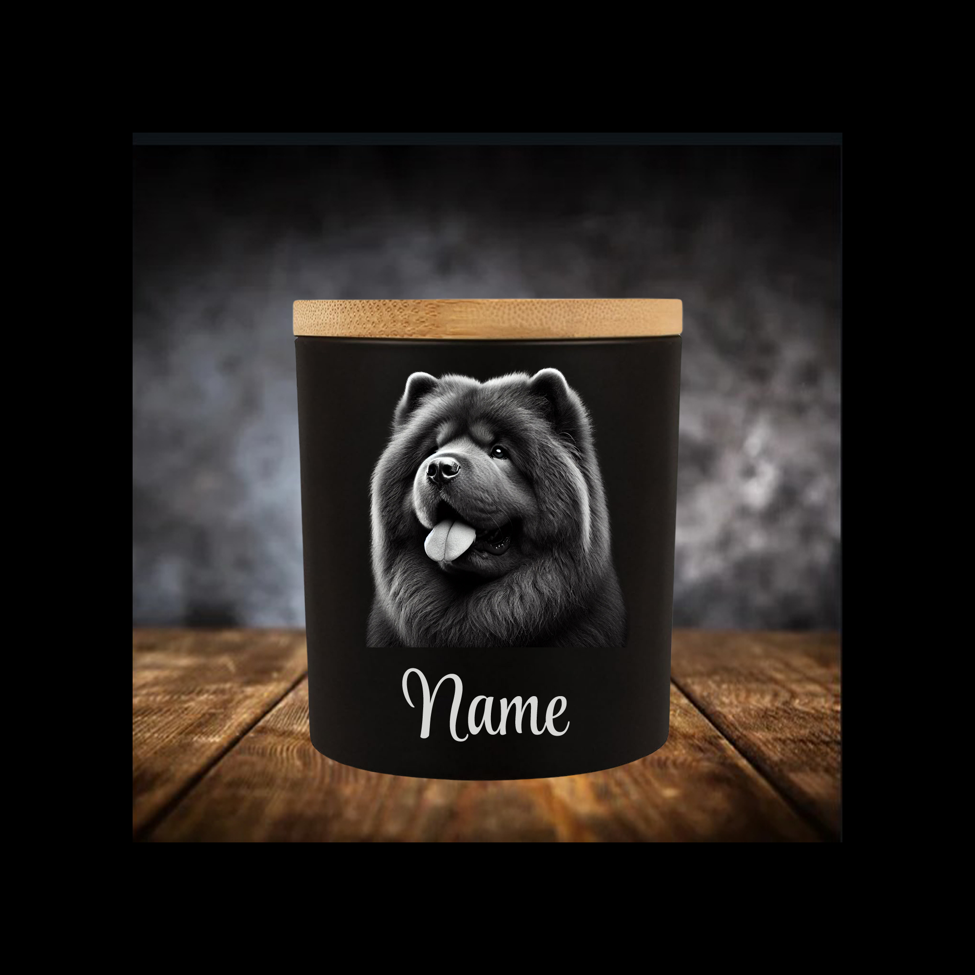 Chow Chow Leckerliglas | Kerzenglas Matt Schwarz | Gravur Hunderasse mit Name Personalisiert