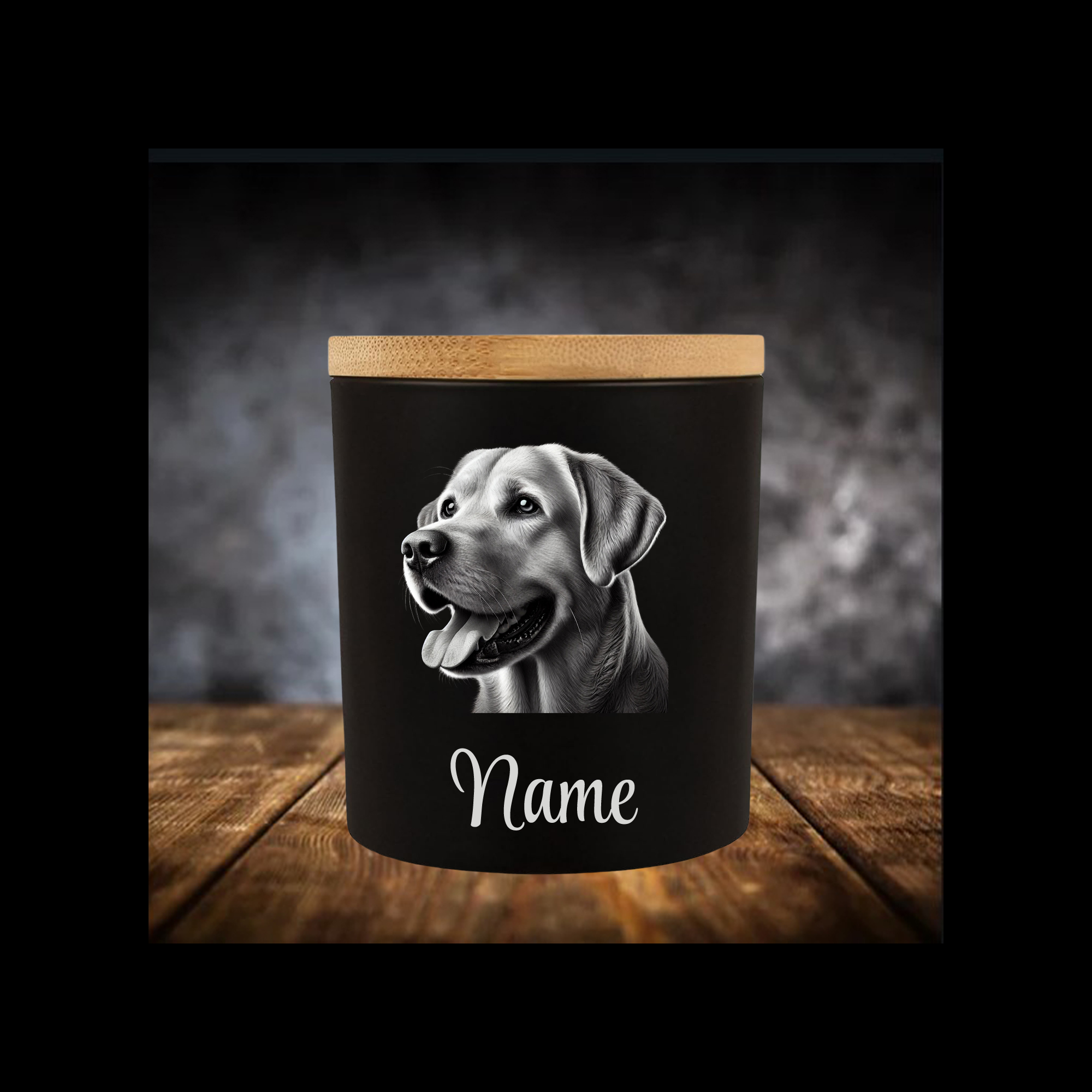Labrador Leckerliglas | Kerzenglas Matt Schwarz 400ml | Gravur Hunderasse mit Name Personalisiert