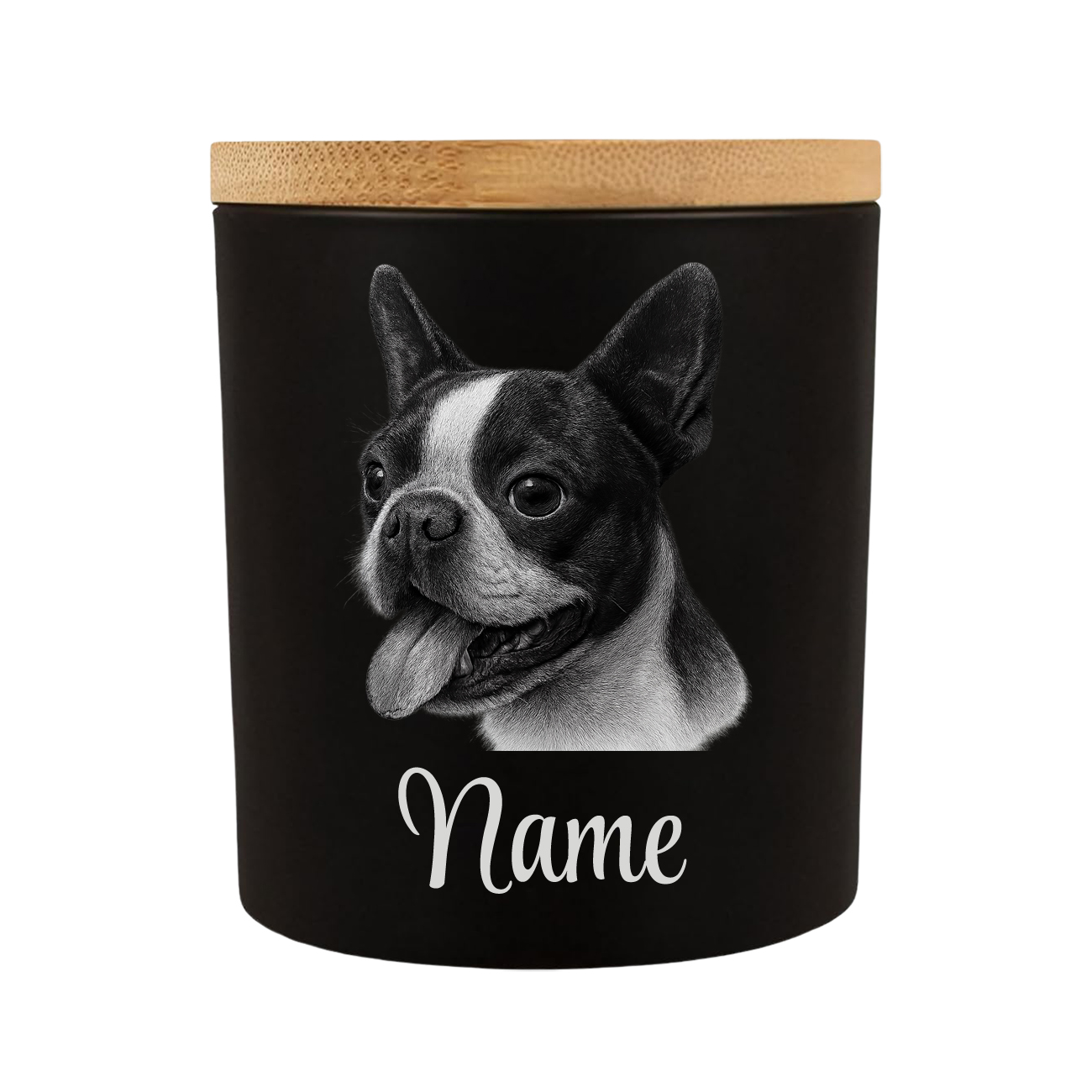 Boston Terrier Leckerliglas | Kerzenglas Matt Schwarz 400ml | Gravur Hunderasse mit Name Personalisi