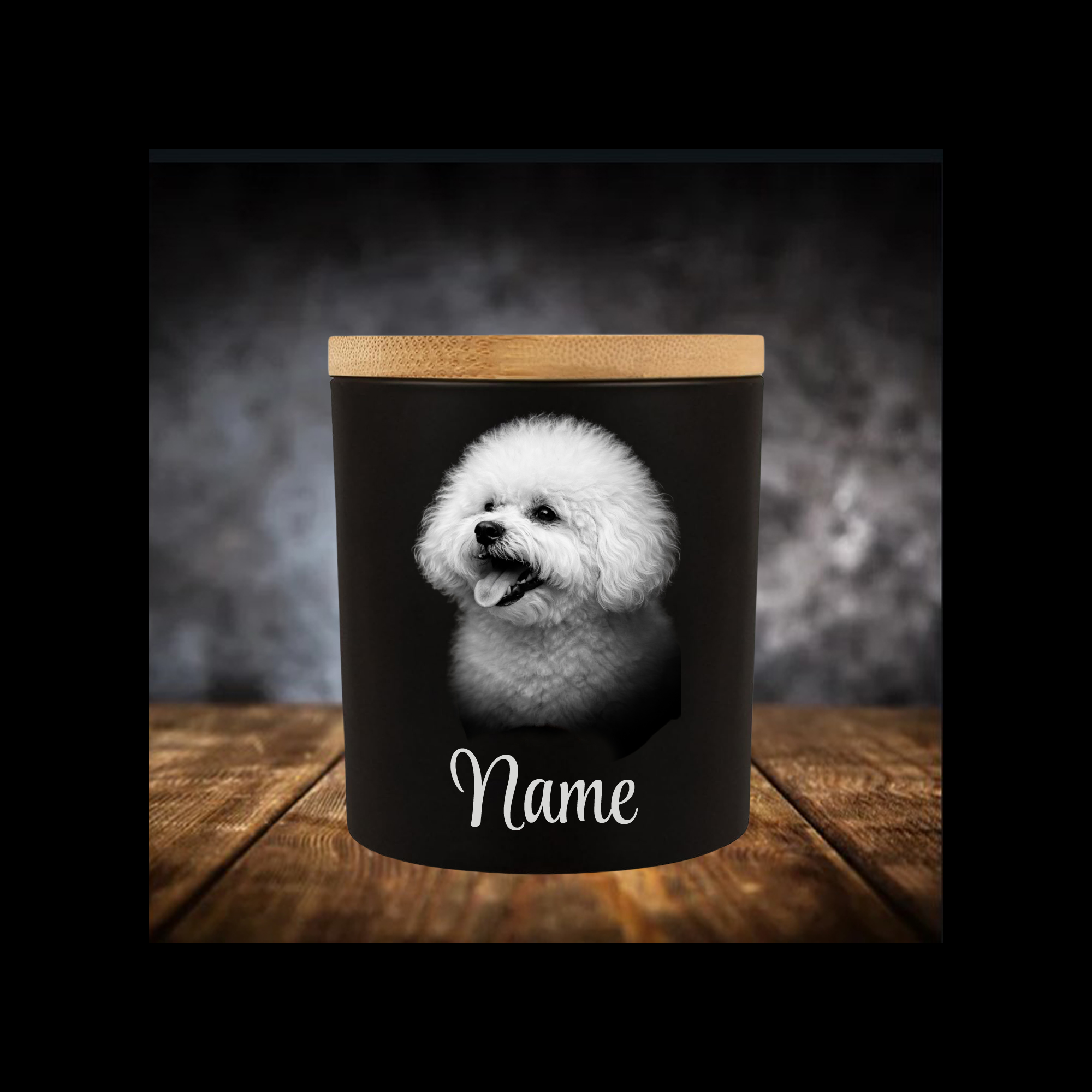 Bichon Frise Leckerliglas | Kerzenglas Matt Schwarz 400ml | Gravur Hunderasse mit Name Personalisier