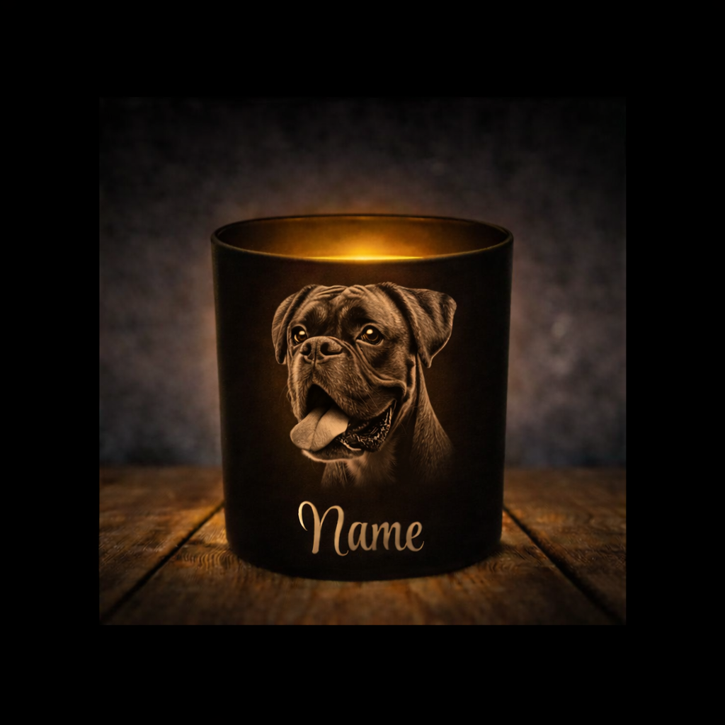Boxer Lichtglas | Erinnerungsglas Matt Schwarz | Gravur Hunderasse mit Name Personalisiert