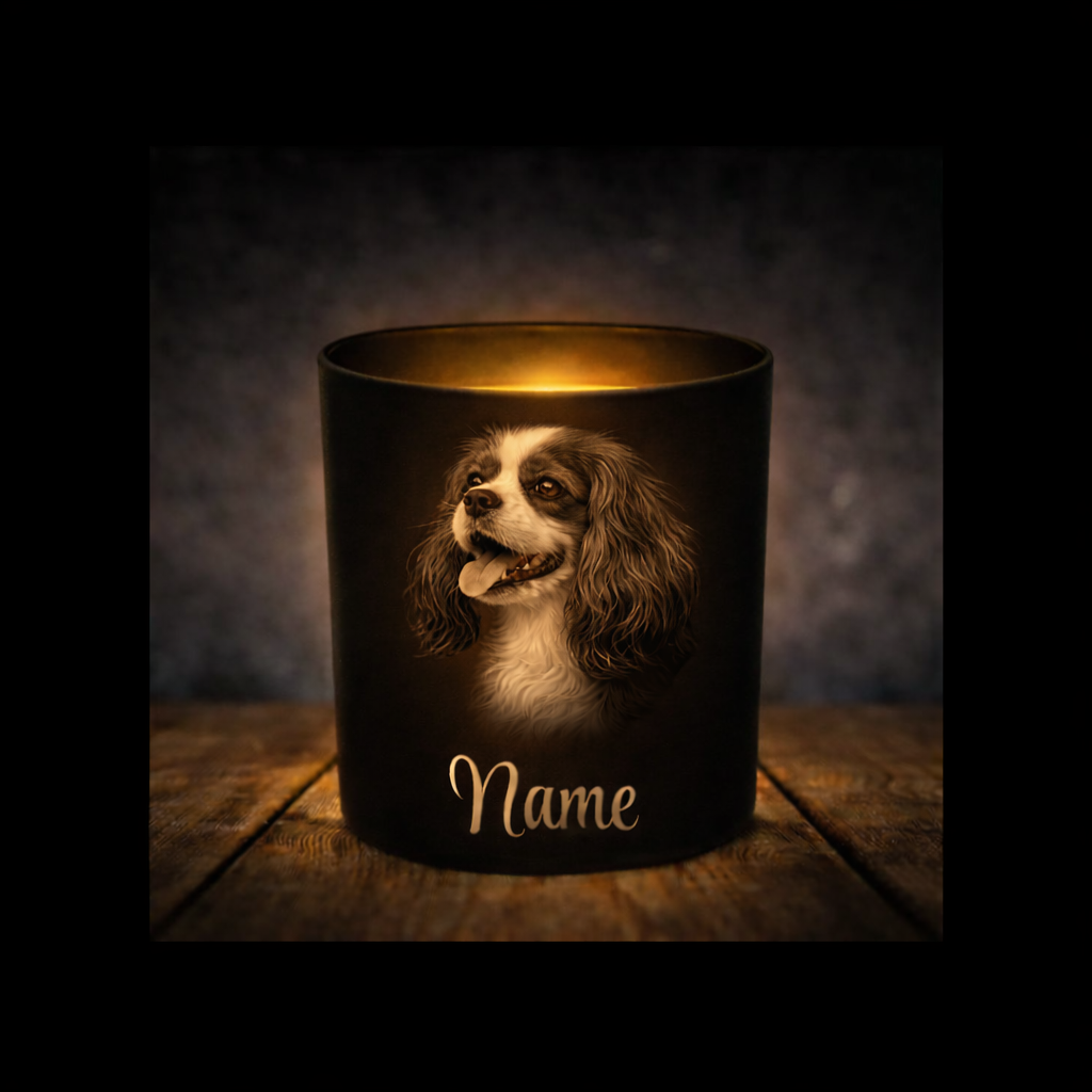 Cavalier King Charles Spaniel Leckerliglas Kerzenglas Schwarz Gravur Hund mit Name Personalisiert
