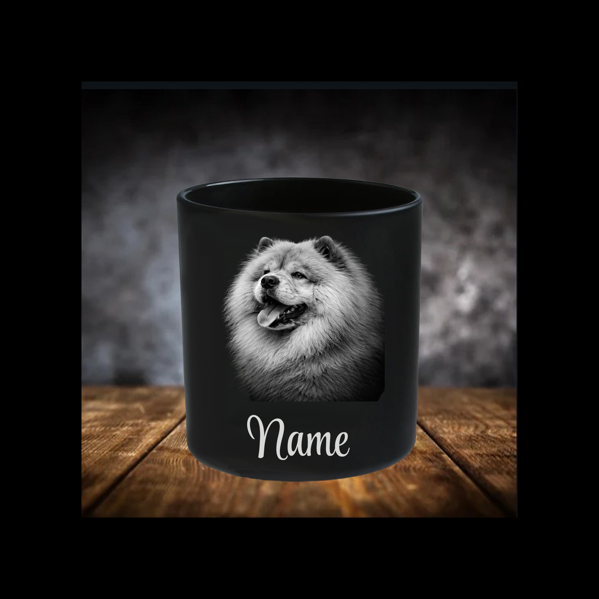 Chow Chow Leckerliglas | Kerzenglas Matt Schwarz | Gravur Hunderasse mit Name Personalisiert
