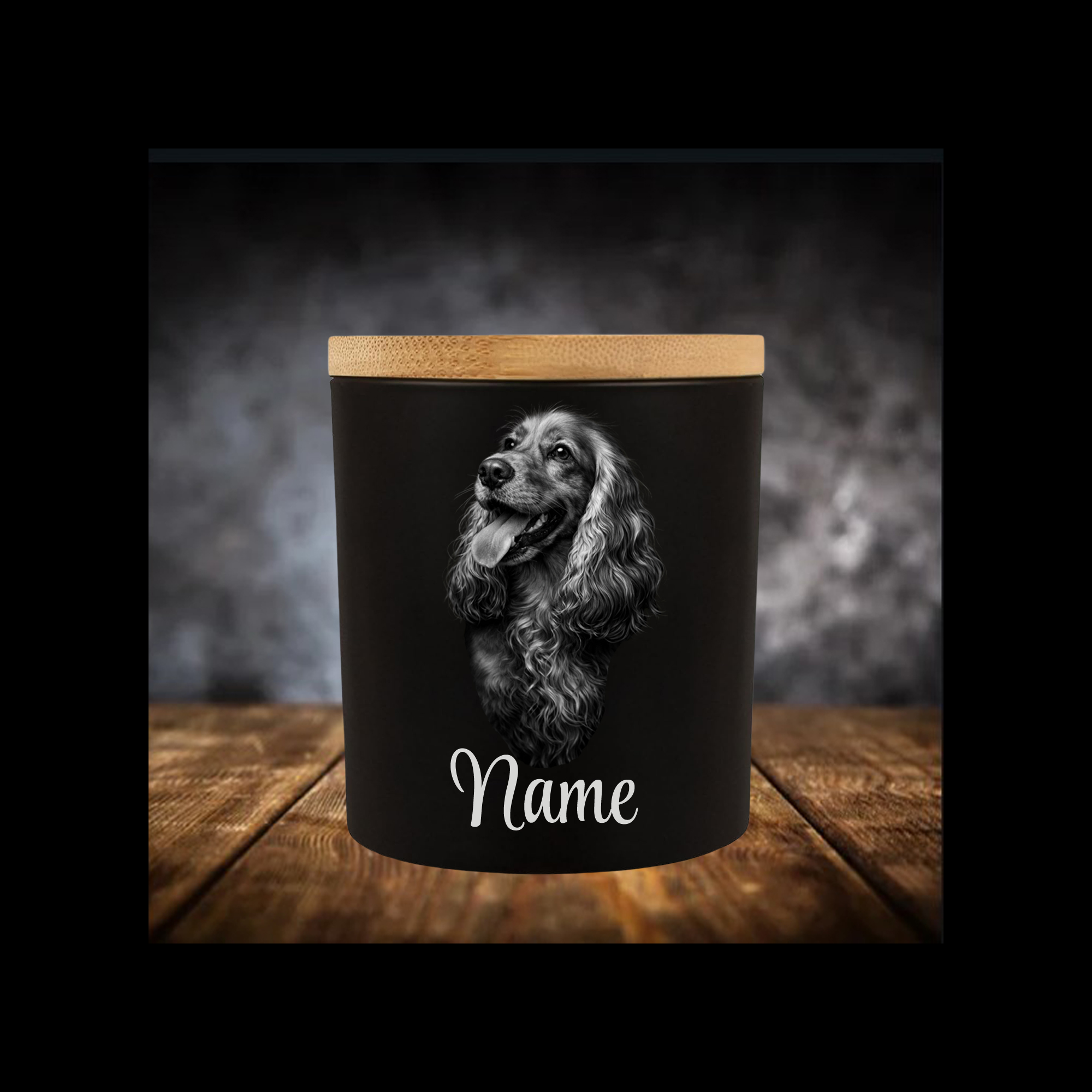 Cocker Spaniel Leckerliglas | Kerzenglas Matt Schwarz | Gravur Hunderasse mit Name Personalisiert