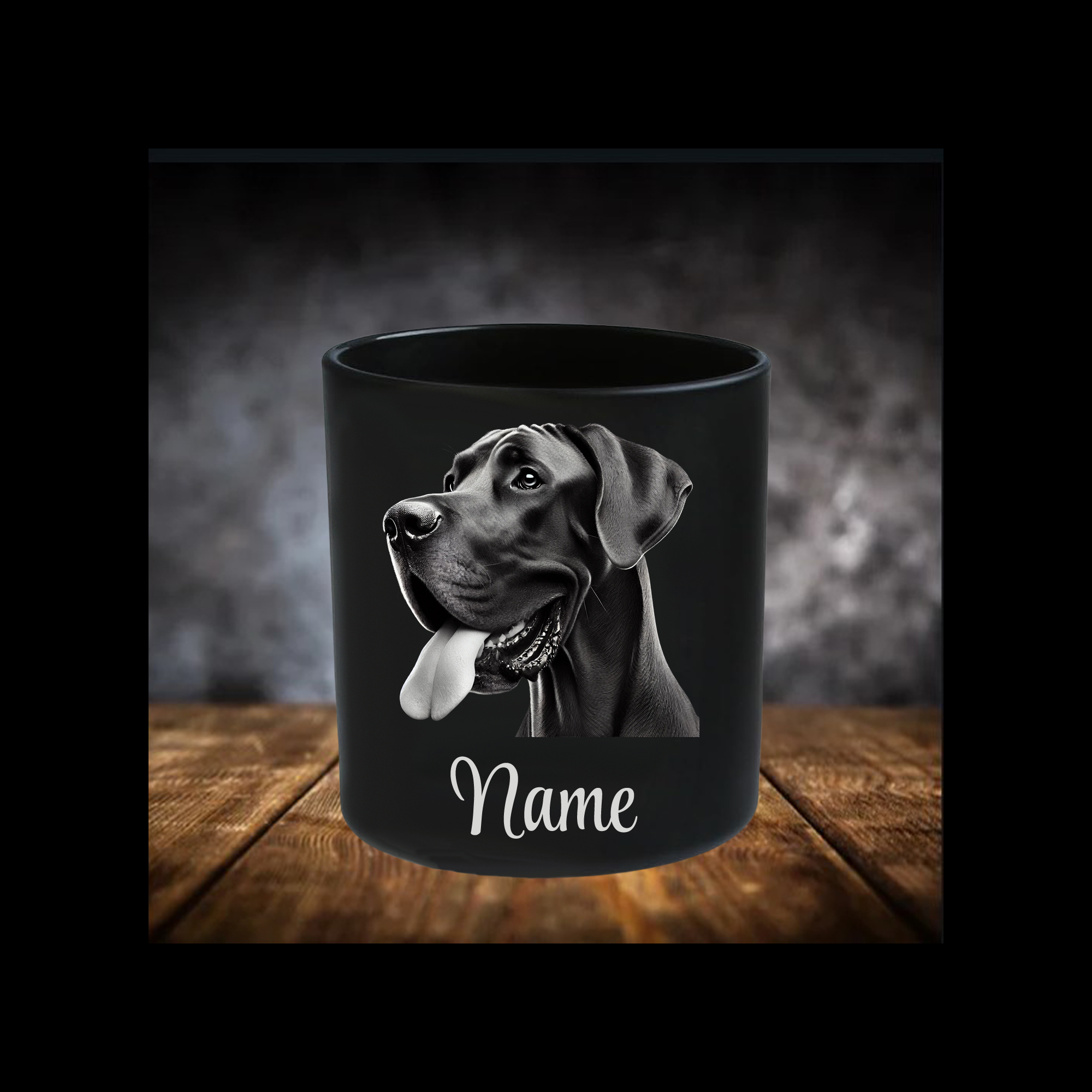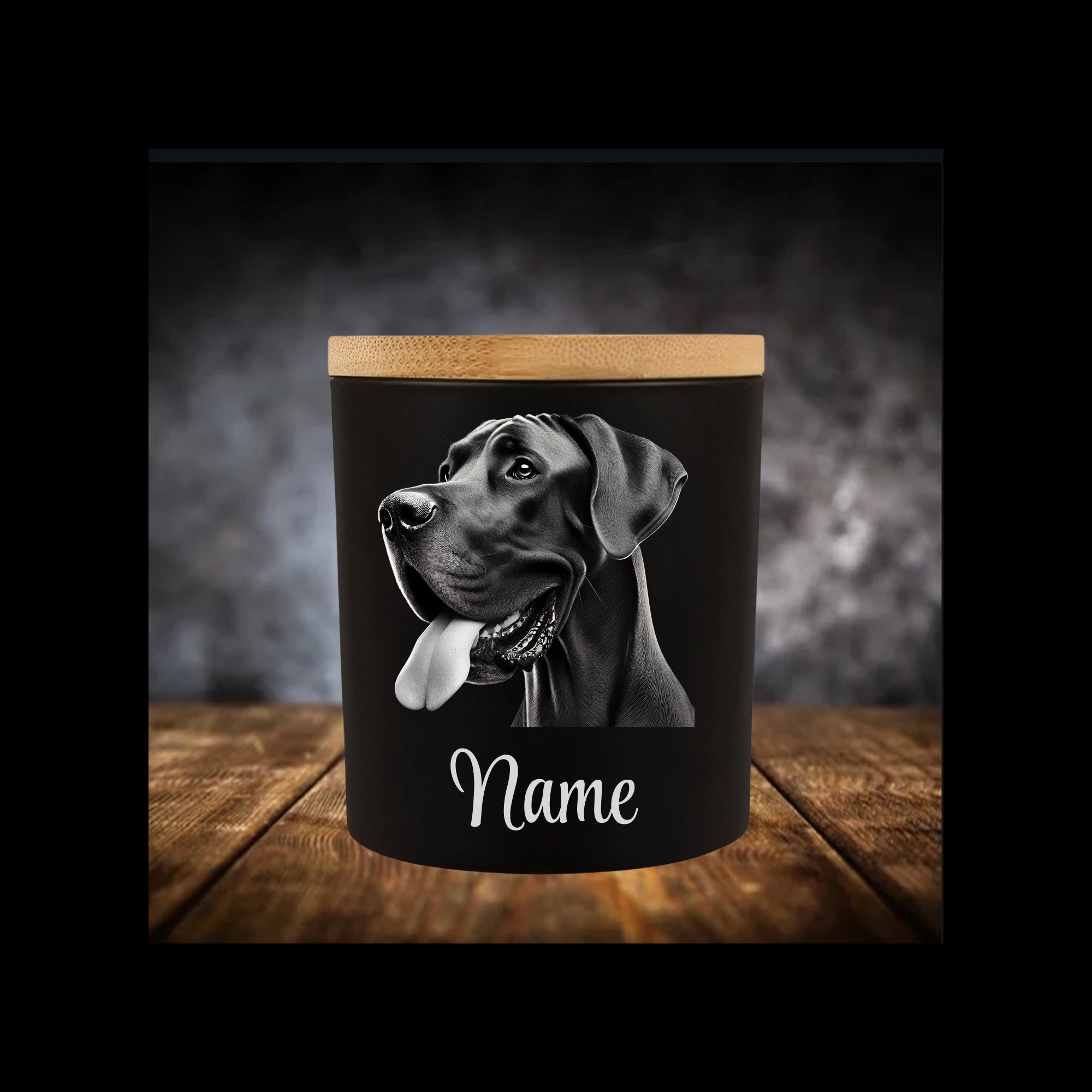 Deutsche Dogge Leckerliglas | Kerzenglas Matt Schwarz| Gravur Hunderasse mit Name Personalisiert