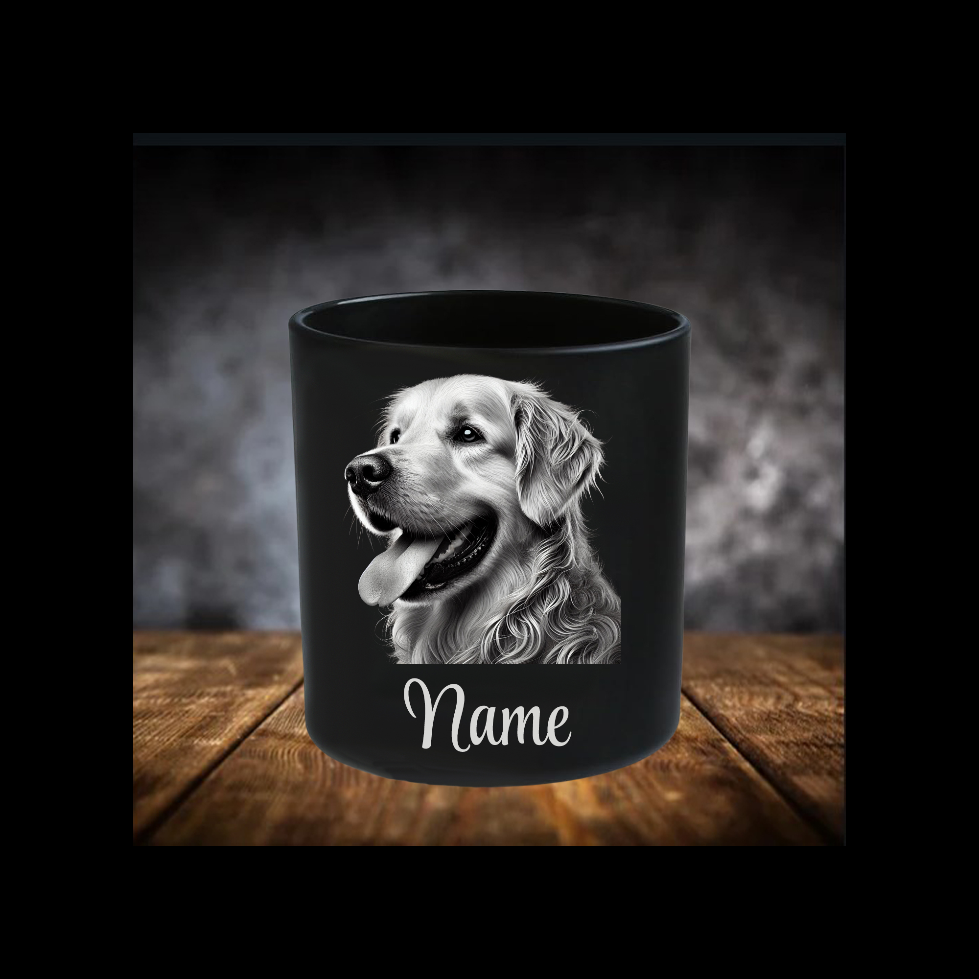 Golden Retriever Leckerliglas Kerzenglas Schwarz Gravur Hunderasse mit Name Personalisiert