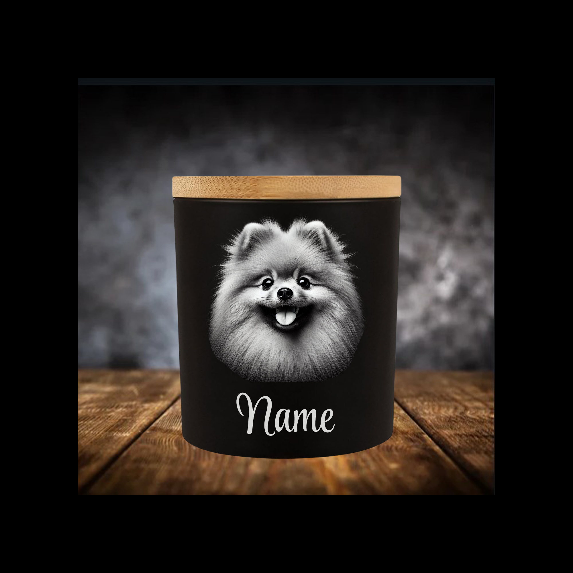 Zwergspitz Leckerliglas | Kerzenglas Matt Schwarz | Gravur Hunderasse mit Name Personalisiert