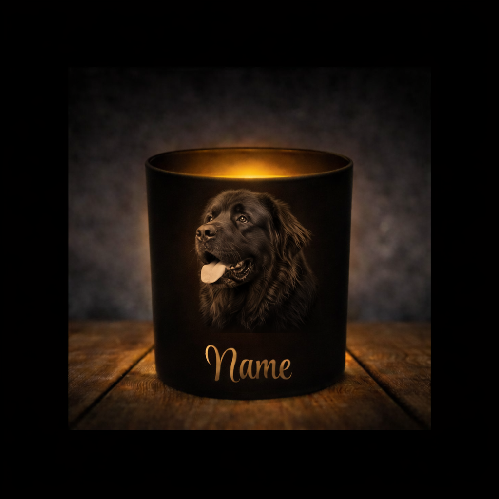 Dieses stilvolle, matt-schwarze Glas wird individuell mit einer hochwertigen Gravur Ihrer gewünschten Hunderasse sowie dem Namen Ihres treuen Vierbeiners veredelt. Ob mit einem Teelicht oder einer Lichterkette – die Gravur entfaltet bei Beleuchtung von innen eine wunderschöne, stimmungsvolle Wirkung.